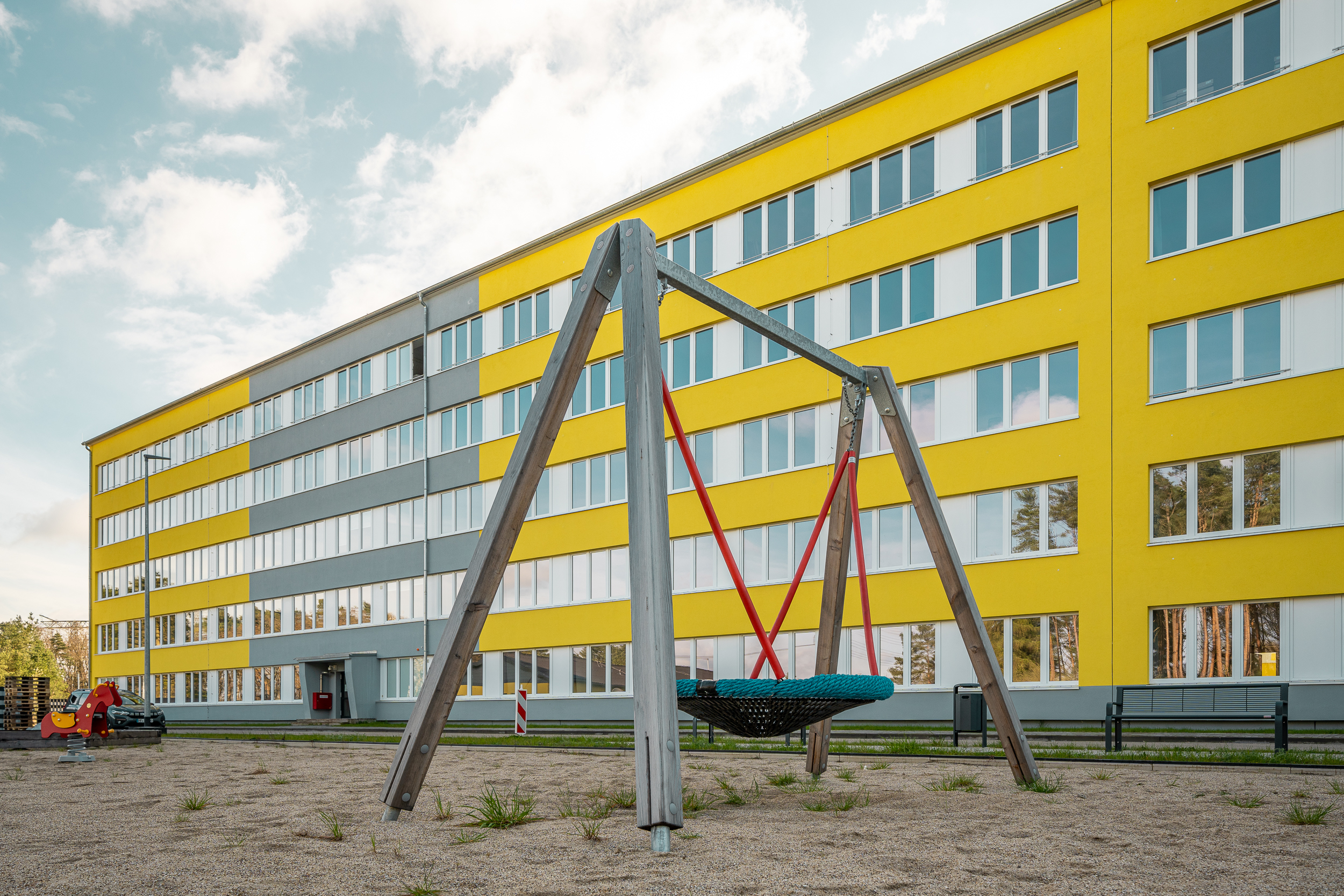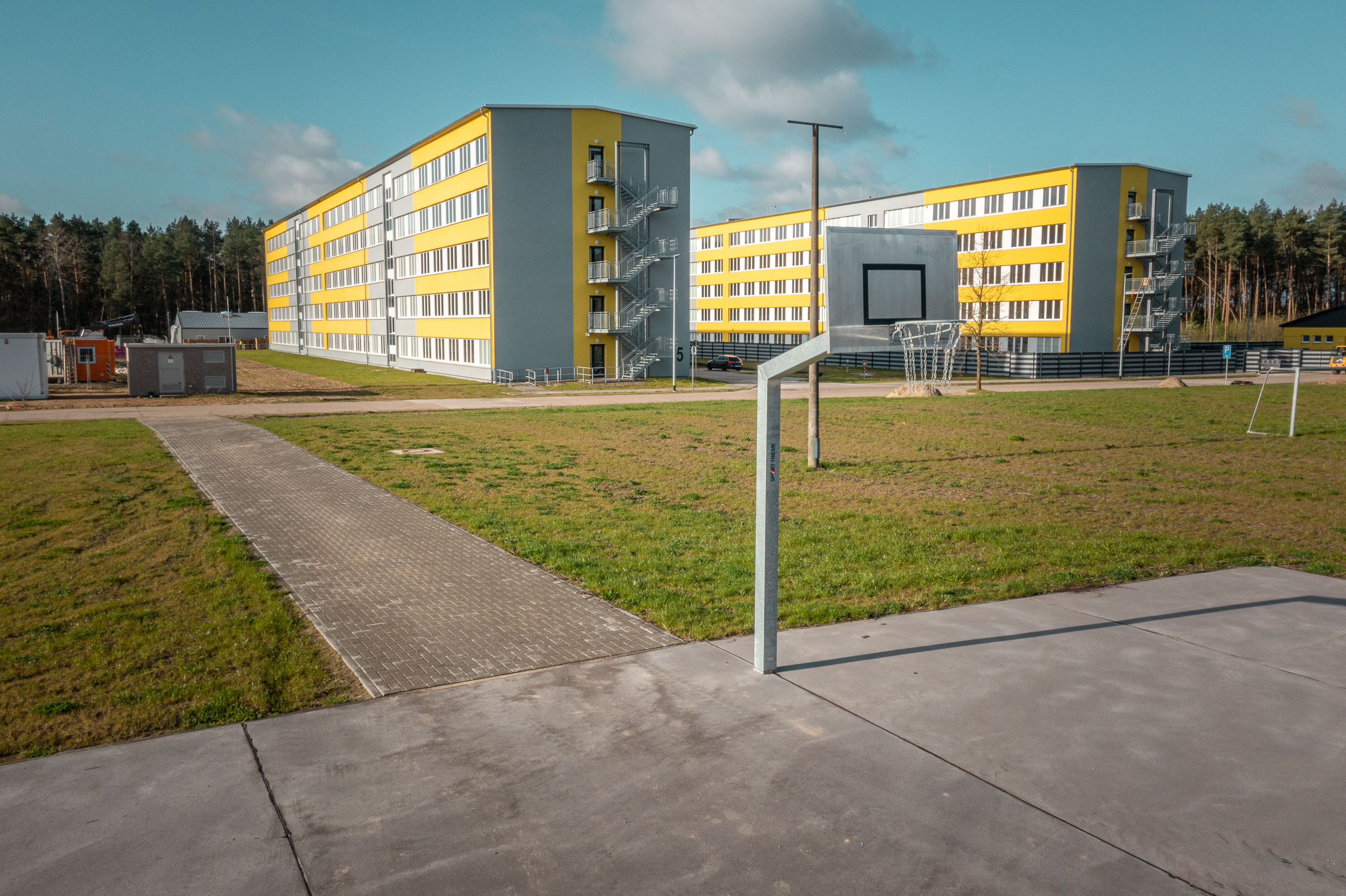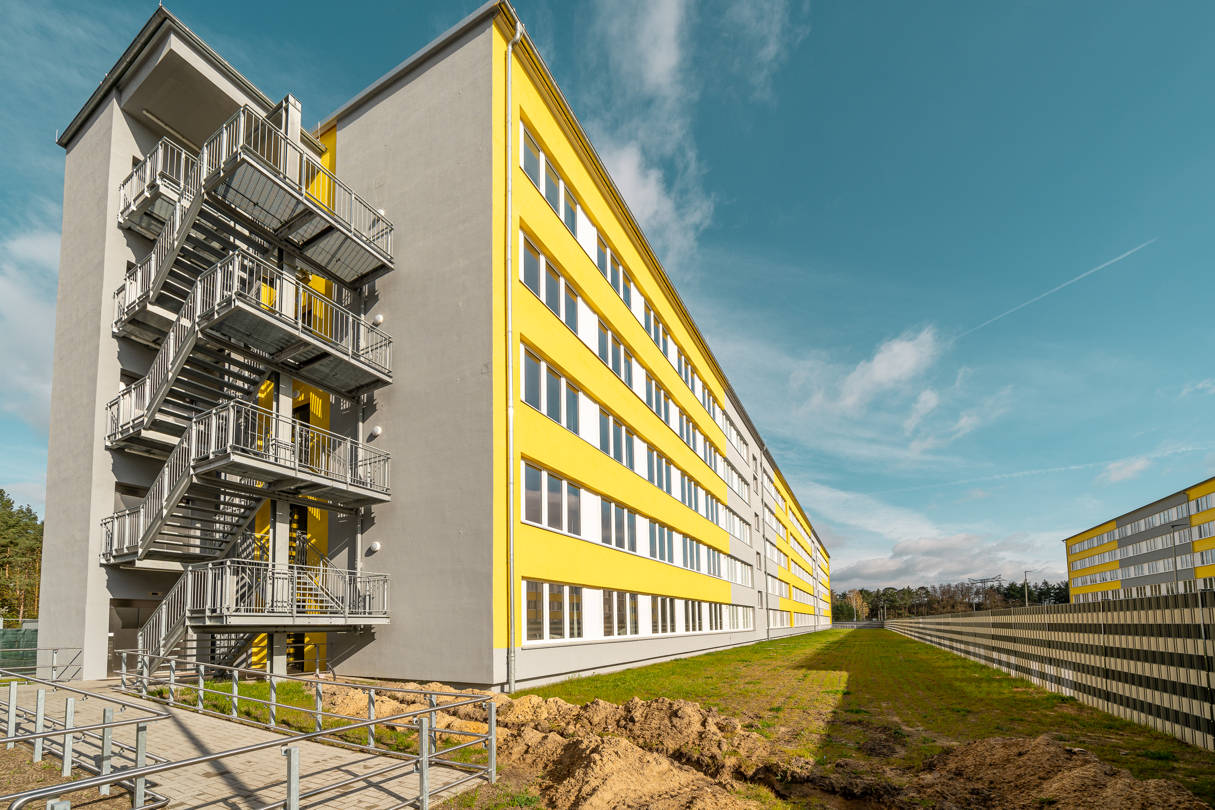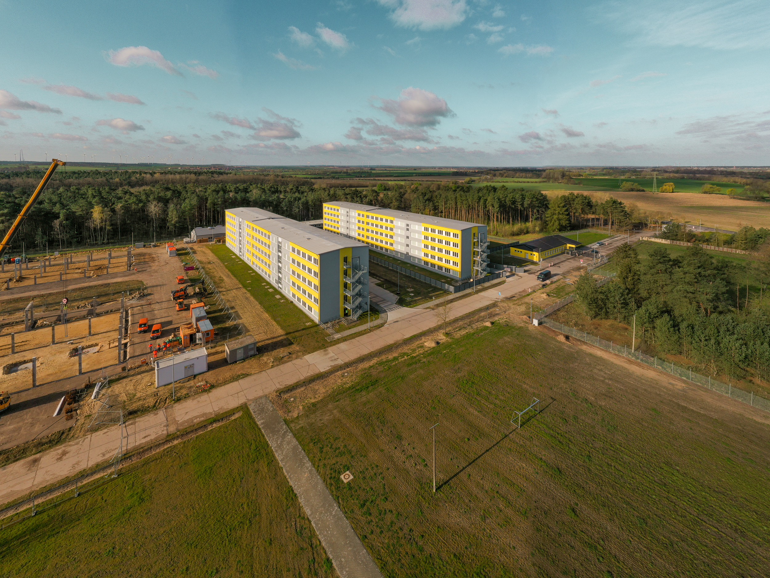Mit der Fertigstellung des Wachgebäudes 2022 und dem Anbau der Außenaufzüge im Jahr 2023 waren wesentliche Grundlagen für eine Unterbringung der Flüchtlinge geschaffen. Im Jahr 2023 wurde beschlossen, eine Interimslösung für eine vorzeitige Inbetriebnahme zu schaffen. Mit Übergabe der Interimsgebäude für die Versorgung und Verwaltung sowie der Sport- und Freizeitflächen am 11.03.2024 ist zum jetzigen Zeitpunkt die Liegenschaft zur Nutzung fertiggestellt. Eine vollständige Inbetriebnahme wird für das Jahr 2025 angestrebt.