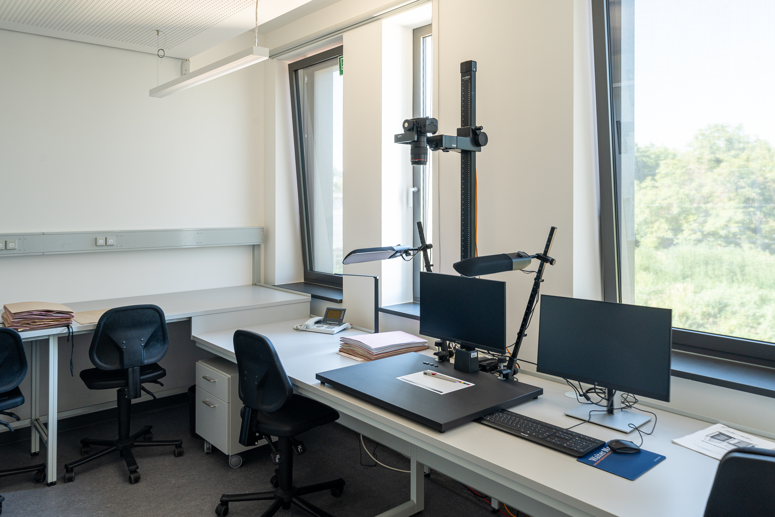 Die Hauptnutzfläche beträgt 1.024 m², wobei die Laborflächen den größten Teil der Nutzung ausmachen. Sie gliedern sich in Großlabore, kleinere Labore und technische Nebenräume. Funktionen mit höheren Schallemissionen wurden im Untergeschoss angeordnet, darunter ein Raum mit Klimaschränken sowie ein Mühlenraum. Darüber hinaus befinden sich auf dieser Ebene den Laboren zugeordnete Archiv- und Lagerräume.