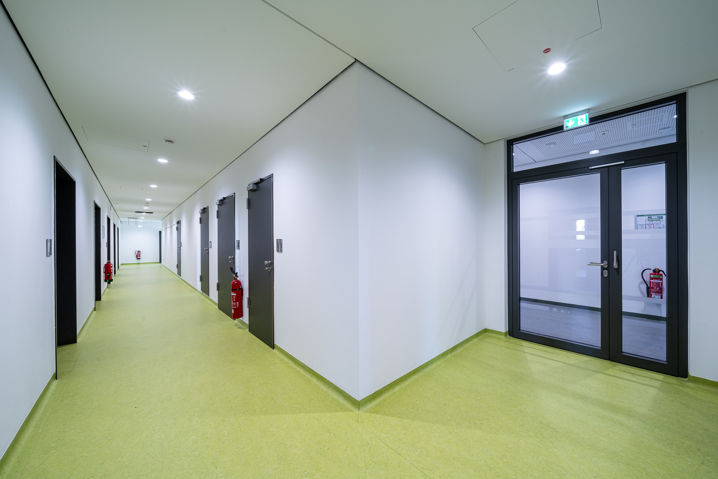 Zur Förderung der Verzahnung von Lehre und Praxis wurde im ersten Obergeschoss ein Seminarraum für 25 Personen eingerichtet, im zweiten Obergeschoss entstanden Zonen des informellen Austauschs. Ein Sozialraum mit Teeküche und angrenzender Loggia ermöglicht den Forschenden die Kommunikation außerhalb von Büro und Labor. Im selben Bereich wurde zudem ein Stillraum angeordnet.