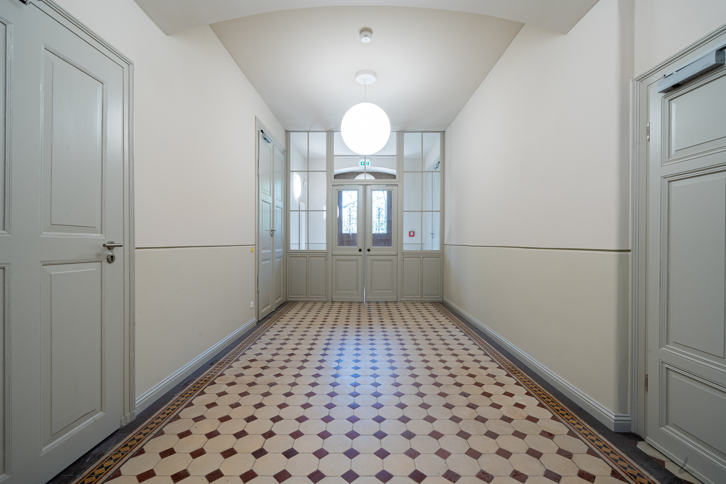 Das ursprüngliche Erscheinungsbild des Institutsgebäudes wurde im Zuge der Sanierung wiederhergestellt – unter anderem durch den originalen, intensiv ockerfarbigen Anstrich und originalgetreue Nachbauten der historischen Holzfenster. Bauzeitliche Elemente im Inneren des Gebäudes, wie historische Türen und Steinfußböden, blieben erhalten. In enger Abstimmung mit der Denkmalpflege wurden bestehende Kastenfenster durch neue Kastenfenster ersetzt.