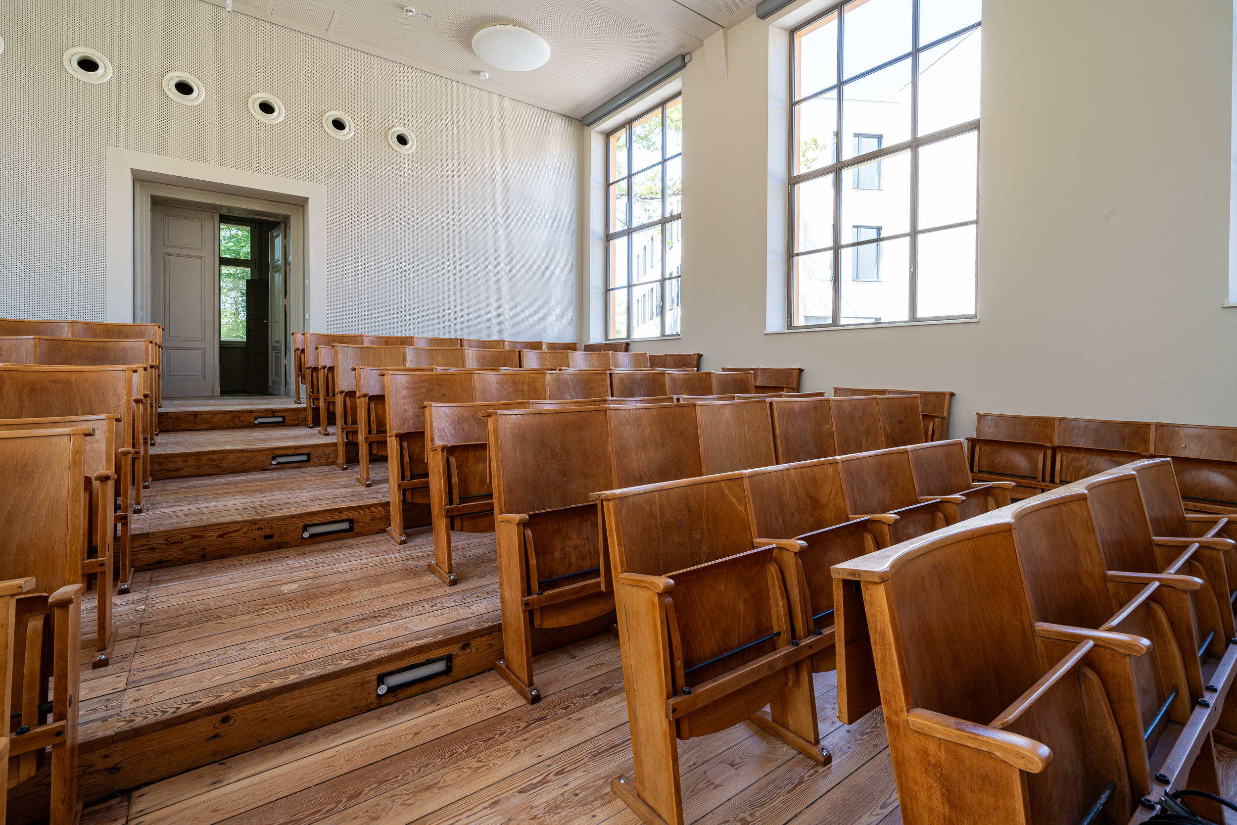 Der im Gebäude befindliche Hörsaal blieb in seinem historischen Erscheinungsbild weitgehend erhalten.