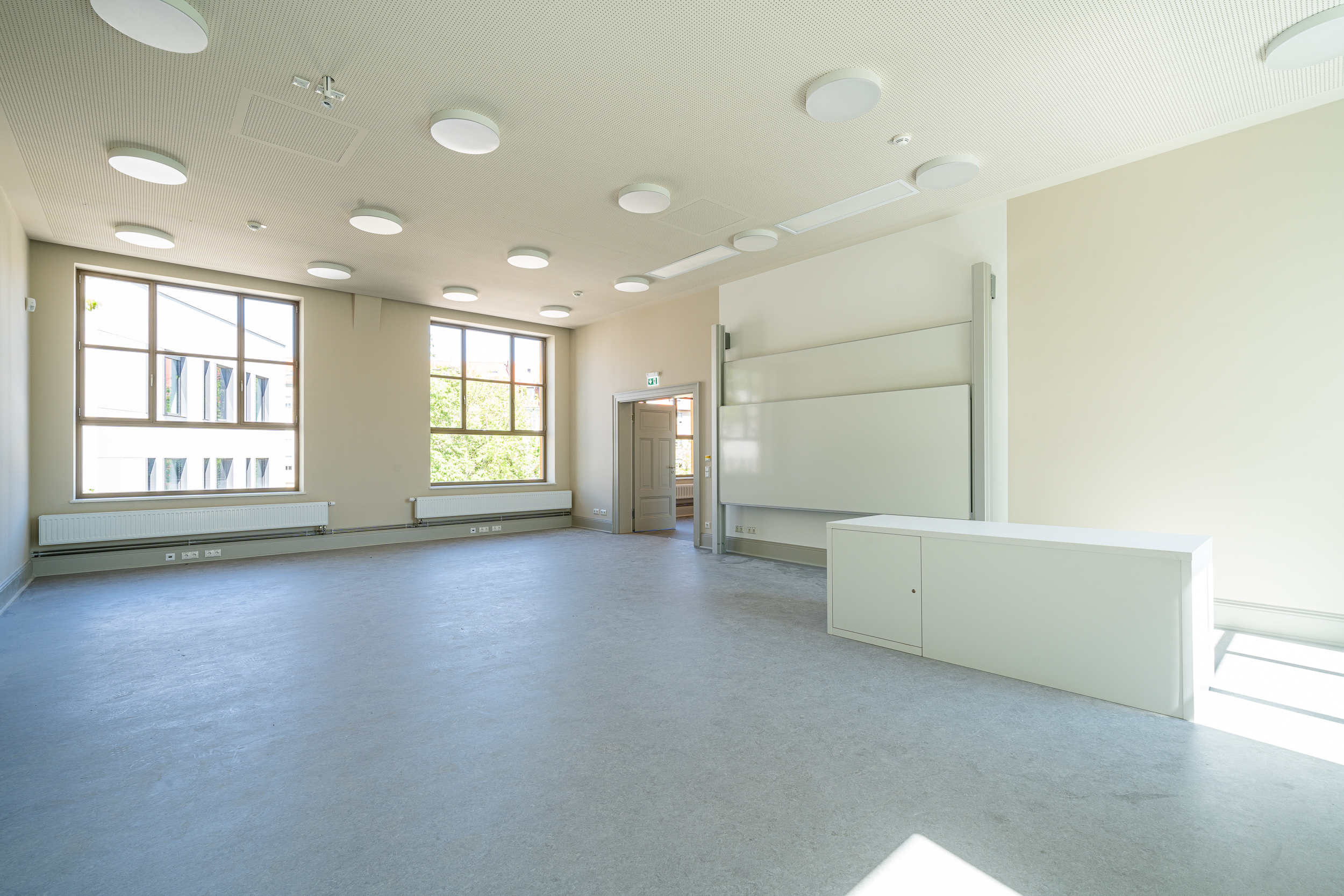 Die durchgeführten Maßnahmen trugen zur Verbesserung der Sicherheit (Brandschutz), der Nutzbarkeit (Akustikdecken, Fenstererneuerung und Lüftungsanlage) sowie der Inklusion (Hörschleife und Rollstuhlstellplatz) bei. Die vorhandenen Fenster wurden durch neue Stahlfenster ersetzt, die in Teilung und Proportionen den Originalen folgen.