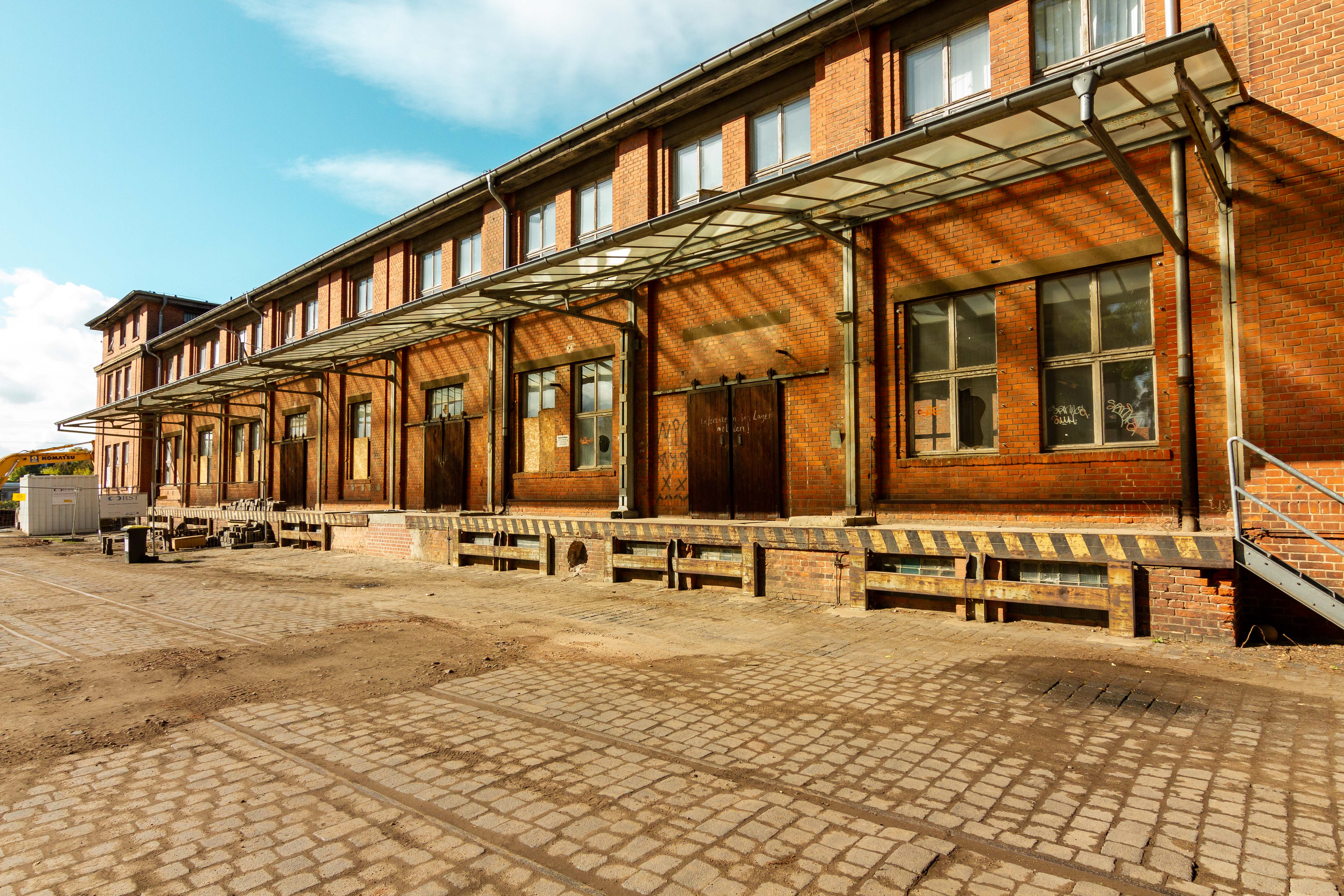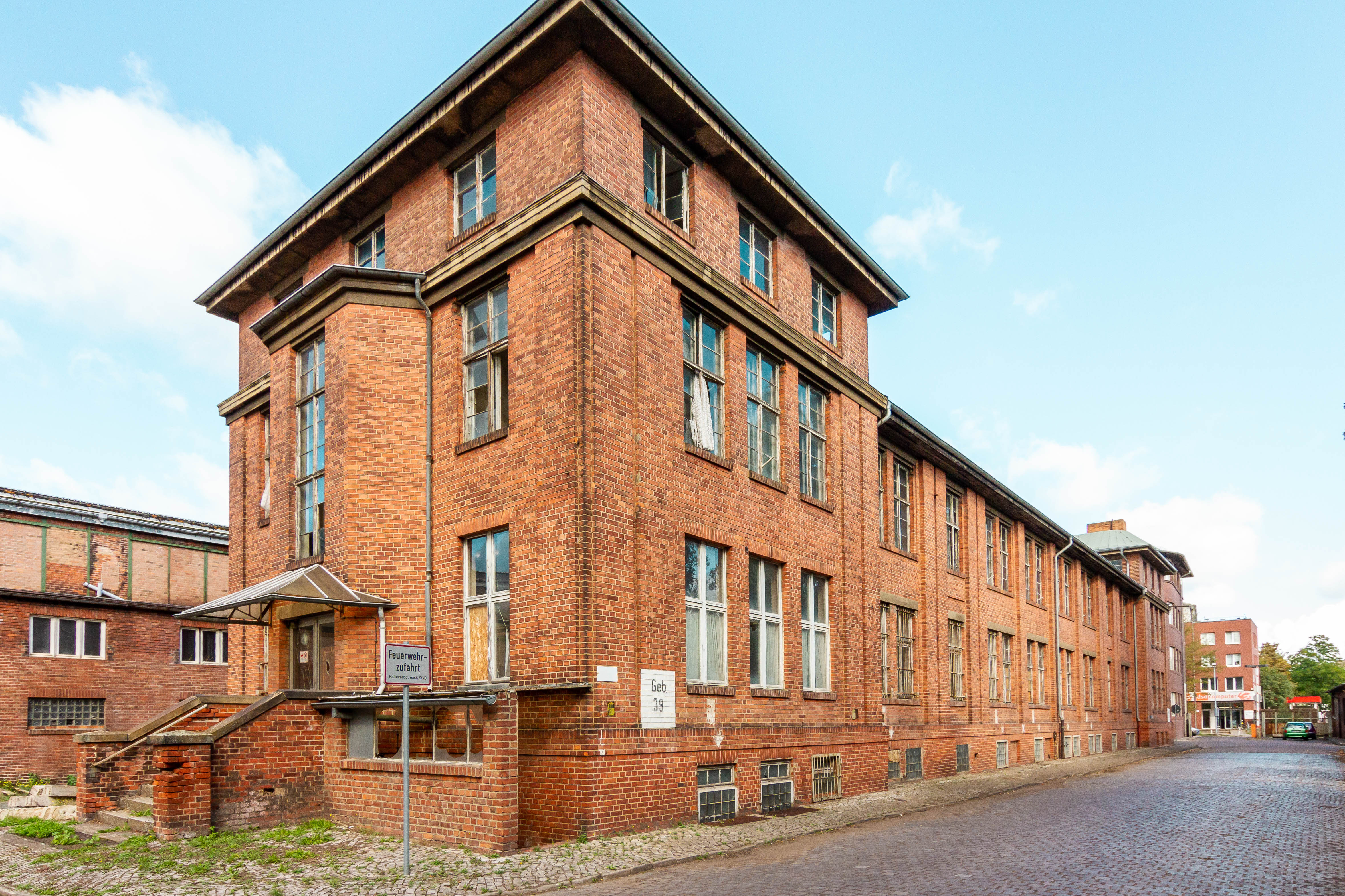 Entlang der inneren Erschließungsstraße reihen sich die drei in rotem Klinkermauerwerk im Jahr 1924 errichteten Industriegebäude in Nord-Süd-Ausrichtung. Die Gebäude sind als Annexe zu der in den Jahren 1915/16 gebauten Presshalle errichtet worden. Bei allen drei Gebäuden handelt es sich um Grenzbebauungen, welche über als Torbögen ausgeführte Verbinder mit der ehemaligen Presshalle baulich verbunden sind. Letztere befindet sich im Eigentum des Grundstücksnachbarn. Aufgrund der derzeitig bestehenden baulichen Verbindung zwischen den Annexen (Haus 3 bis 5) und der Nachbarbebauung ist im Baulastenverzeichnis der Landeshauptstadt Magdeburg auf den Blättern 219 und 220 eine Vereinigungsbaulast für Leitungen und Gebäude eingetragen. Alle drei Gebäude sind Einzeldenkmäler im Sinne des § 2 Abs. 2 Nr. 1 Denkmalchutzgesetz des Landes Sachsen-Anahlt (DSchG LSA); ein Energieausweis liegt daher nicht vor. Die Häuser 3 und 4 wurden im Jahr 1996 modernisiert und sind seit dem Jahr 2009 ungenutzt. Haus 5 blieb unsaniert und steht seit dem Jahr 1990 leer. Alle 3 Gebäude weisen erheblichen Sanierungs- und Modernisierungsbedarf in jedem Gewerk auf. Zudem hat ein Brandereignis im südlichen Bereich des Hauses 3 zusätzlichen Schaden an der Bausubstanz verursacht. Die Gebäude sind von der inneren Erschließung mit den ortsüblichen Versorgungsmedien getrennt.