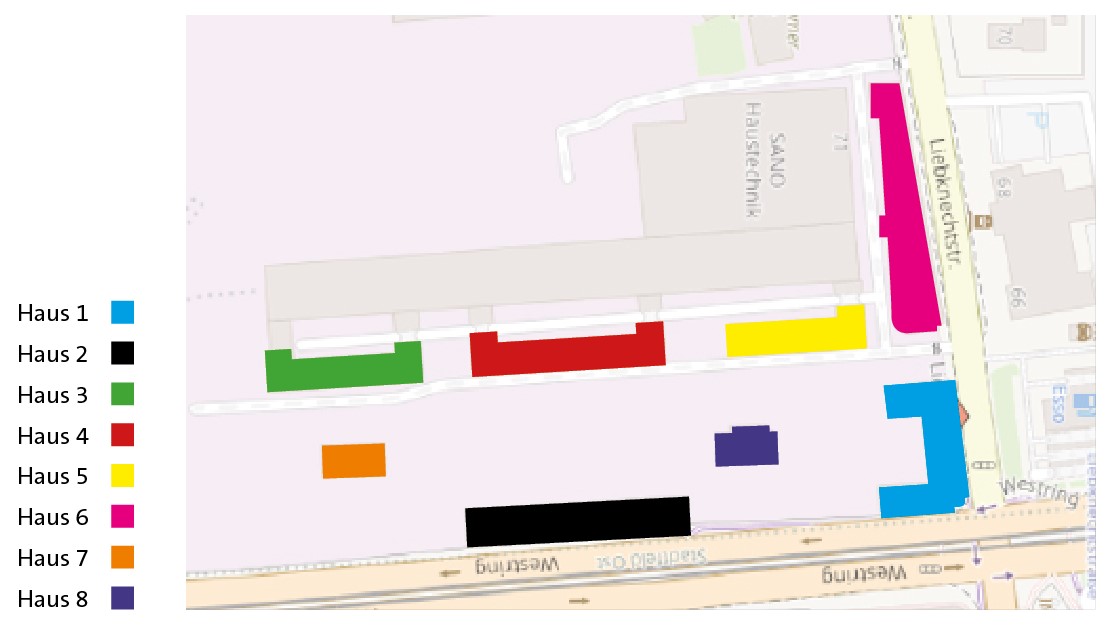| Objektlage | Stadtteil Stadtfeld West, Liebknechtstraße 65-91 |