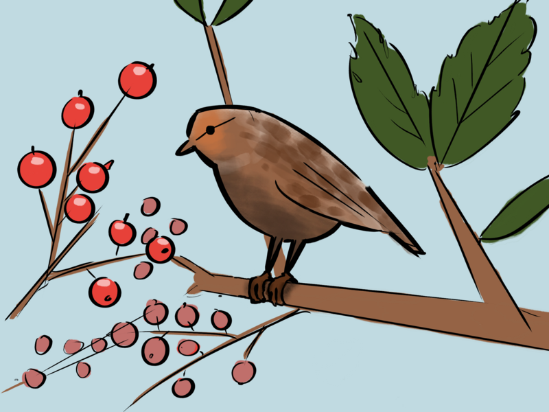 Vögel rasten, fressen und hinterlassen ihre Spuren. So gelangen Samen in die Hecke. Neben dem Plumpskloeffekt werden auch vom Wind Samen eingetragen, sodass erste Kräuter und Jungpflanzen in der Benjeshecke keimen.
