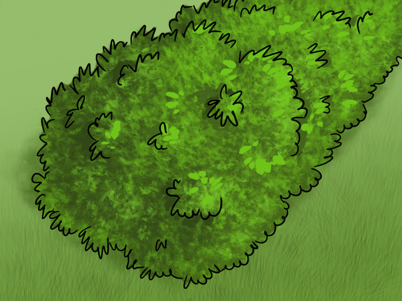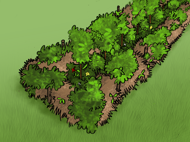 Nach 8 bis 15 Jahren überwächst die Vegetation das Totholz. Um das zu beschleunigen haben wir zum Anfang in der Mitte Sträucher als Starthilfe gepflanzt.