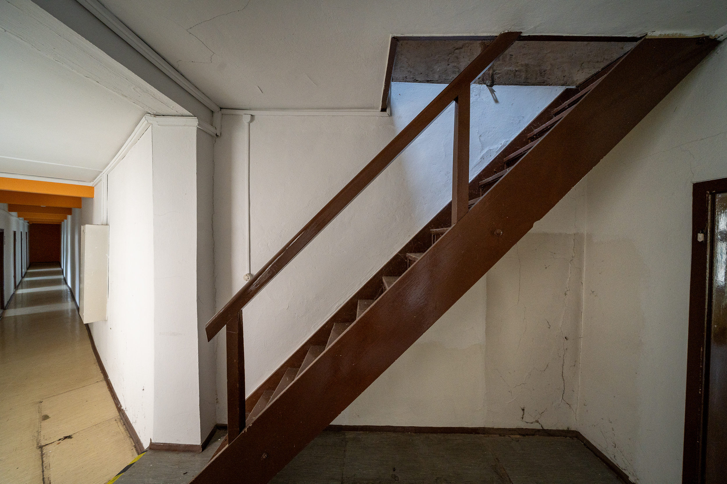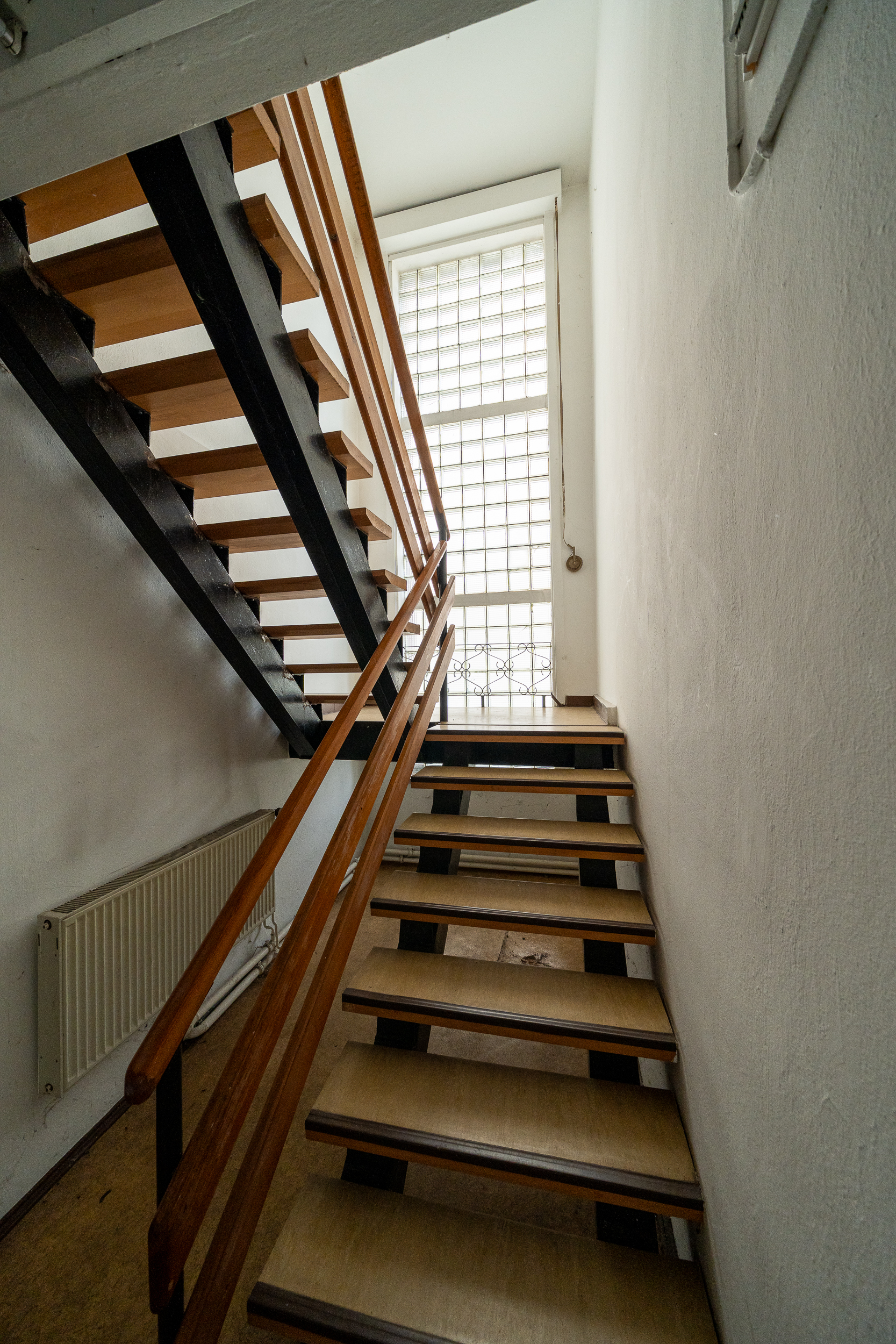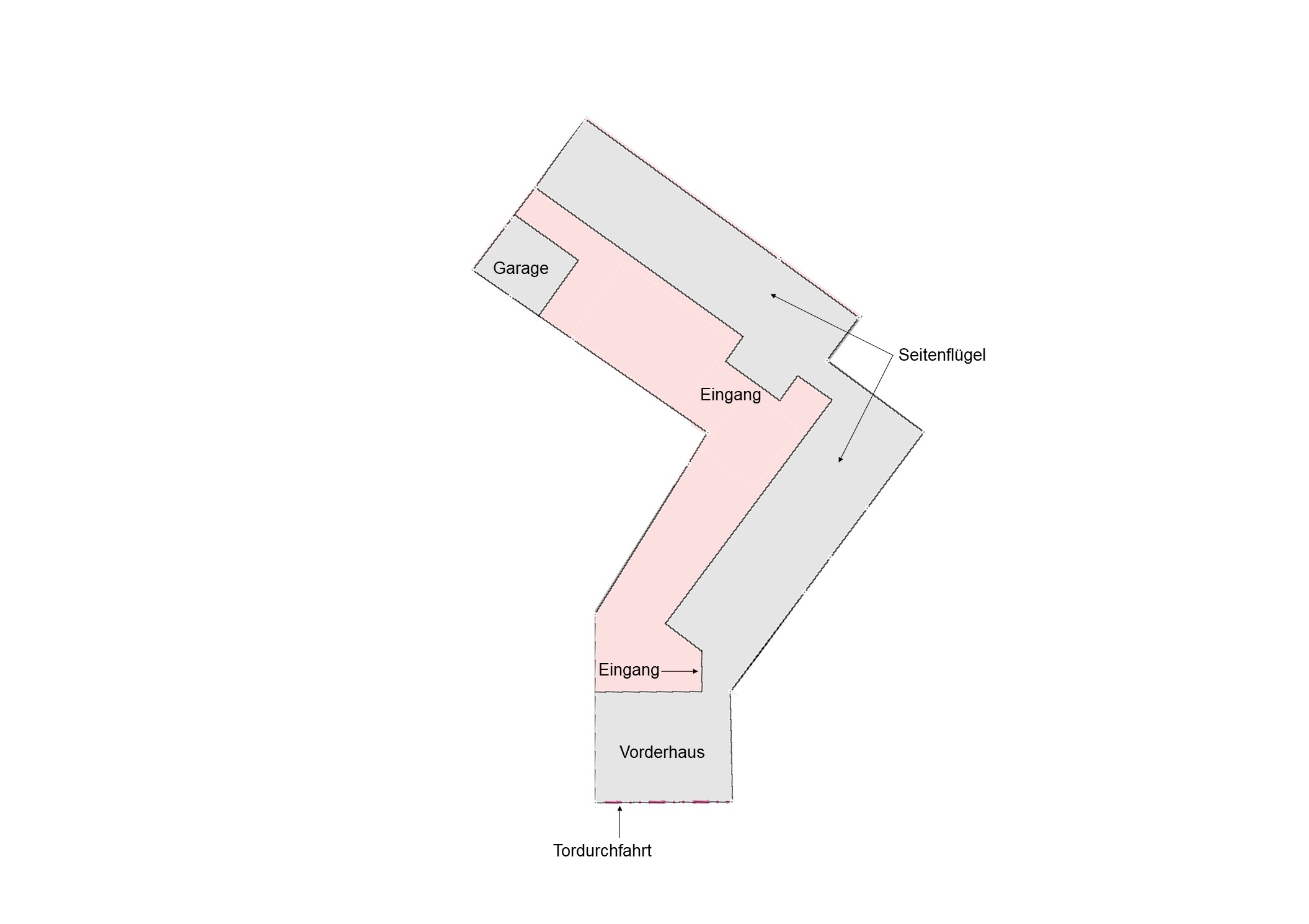 Das Vorderhaus wurde ca. 1935 errichtet und bietet ca. 109 m² Fläche auf zwei Etagen. In den 1970-er Jahren wurde der Seitenflügel angebaut, der ca. 517 m² Fläche bietet und sich ebenfalls über zwei Etagen erstreckt. Der Seitenflügel verfügt zum einen über ein eigenes Treppenhaus und ist über ein weiteres Treppenhaus mit dem Vorderhaus verbunden.