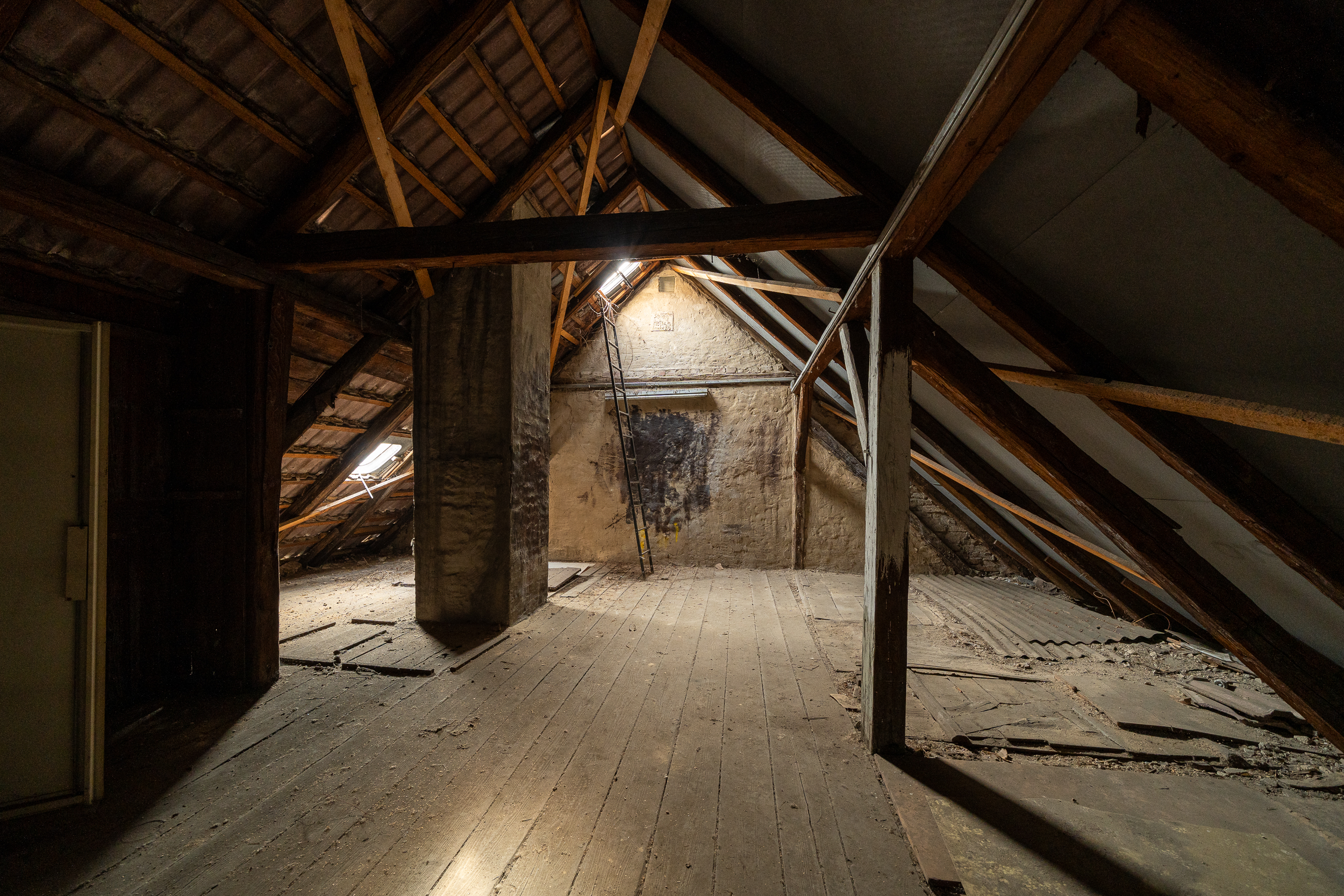 Das Vorderhaus ist zum Teil unterkellert - hier ist die Heizungsanlage aus dem Jahr 1991 untergebracht. Das Erdgeschoss verfügt über zwei Zimmer und eine Teeküche. Im Obergeschoss befinden sich 3 weitere Zimmer, eine Teeküche und der Zugang zum Dachgeschoss, das bisher als Lagerfläche genutzt wurde. Das Dachgeschoss ist in den genannten Flächen nicht berücksichtigt.
